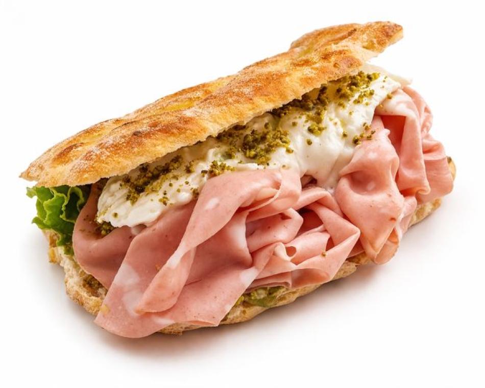 Grüner Salat, Burrata, Pistazien-Mortadella, Pistazienpesto