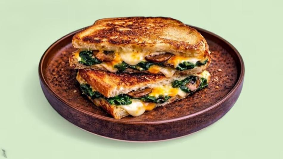Warmes Sandwich mit Cheddar, Gruyère, Champignons und Spinat