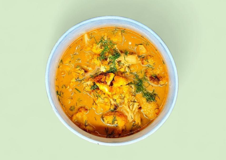 Soupe de chou-fleur, cumin, curcuma, citron, aneth