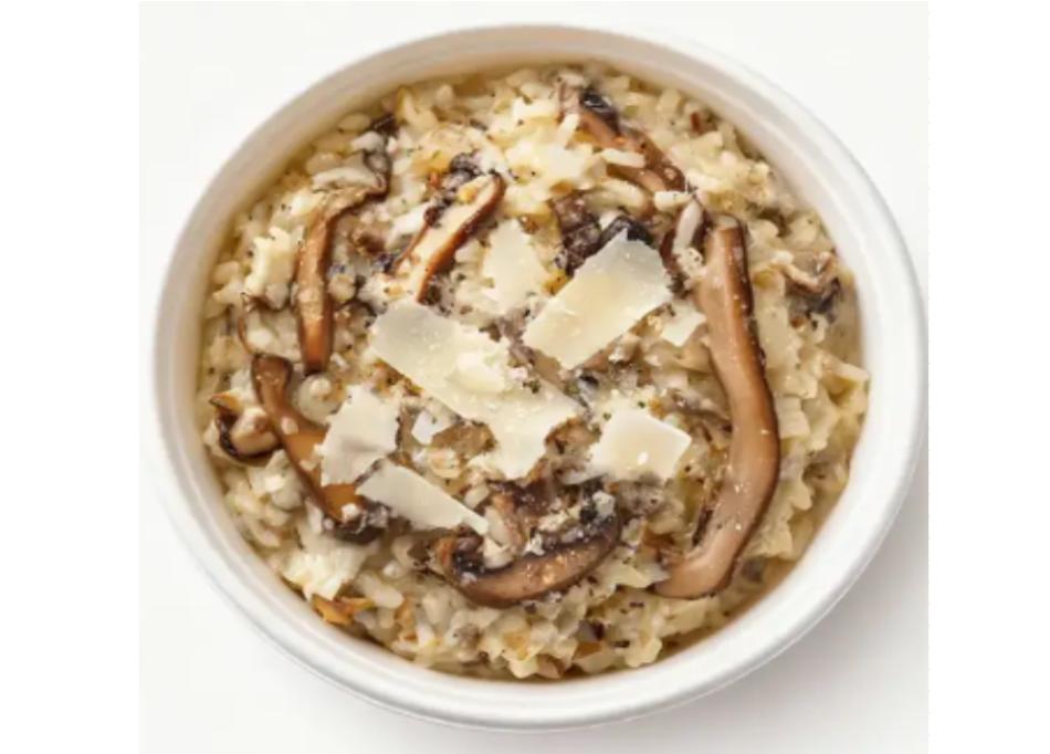 Pilzrisotto 90,4 % (Arborio-Reis, Wasser, Zwiebeln, Pilze 7,5 %, SAHNE, Rapsöl, geriebener KÄSEmix (EI-Lysozym), Suppenbrühe (SELLERIE), Salz), Grana Padano (EI-Lysozym), Pilze 6,5 %, Petersilie. Kann Spuren von Gluten, Sesam, Nüssen, Fisch, Senf, Erdnüssen und Soja enthalten.