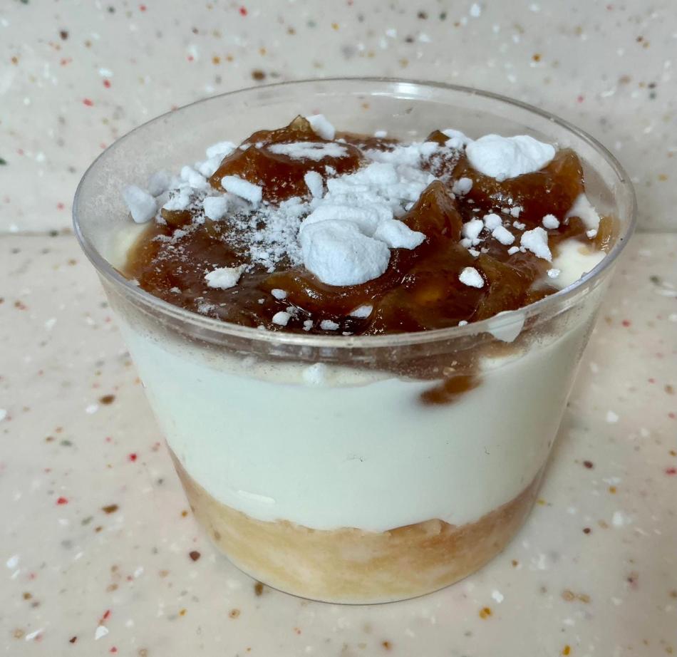 Kuchen, griechischer Joghurt, Kastaniencreme, Baiser