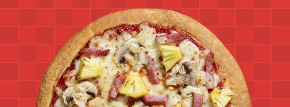 Tomatensauce mit Kräutern, Kochschinken, Ananas, Champignons, Mozzarella