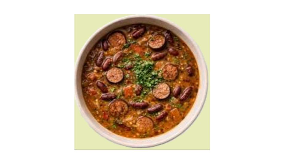 Knoblauch, Zwiebeln, rote Bohnen, Sellerie, rote Paprika, grüne Paprika, Oregano, Thymian, Gemüsebrühe, Andouille-Wurst