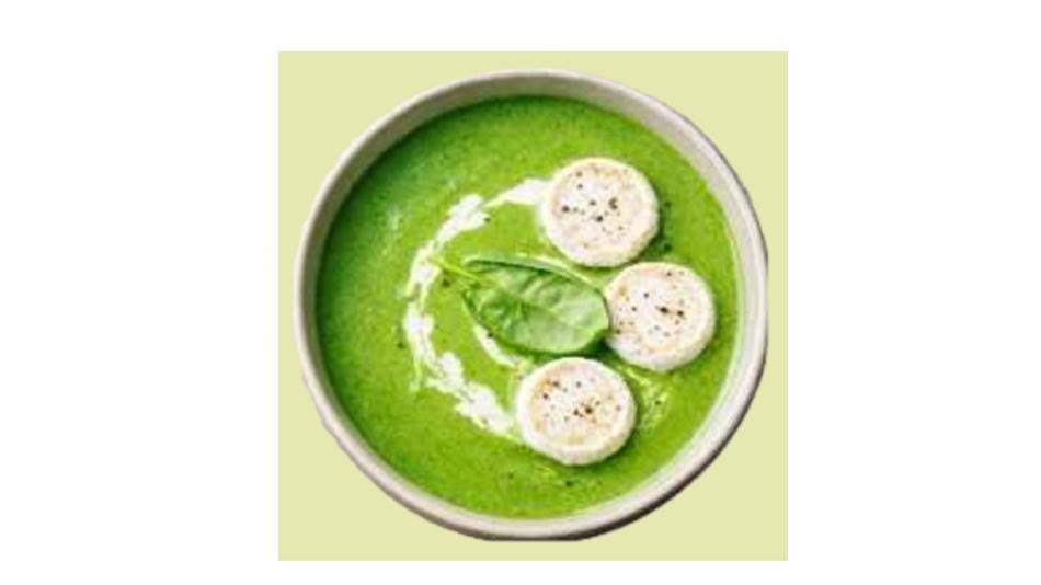 Tagessuppe: Grüne Spinat-Zucchini-Brokkoli-Suppe mit Rocamadour 330ml + Croque