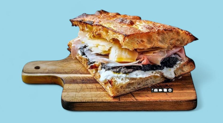 Genießen Sie das Crudorino, ein Sandwich mit toskanischen Pilzen und Trüffeln.