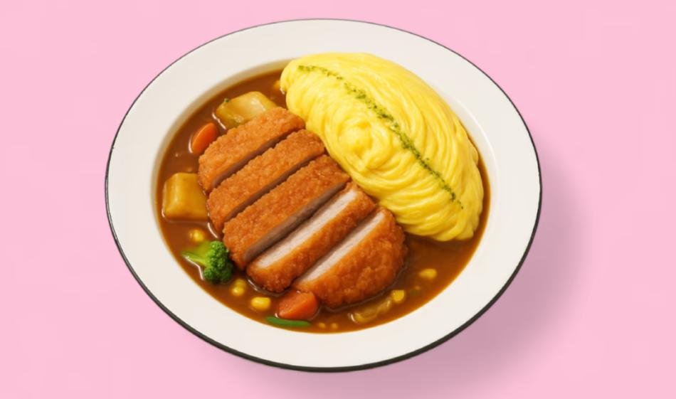 Tonkatsu-Schweinefleisch-Omurice mit Curry