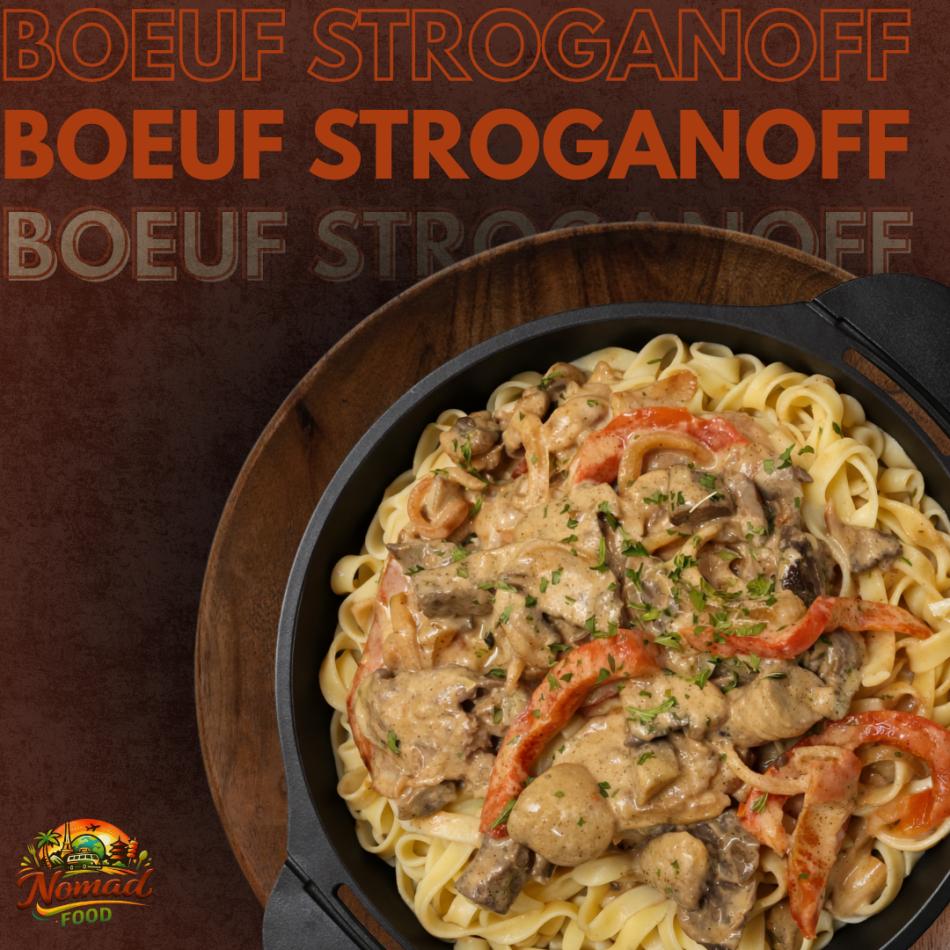 Rinderfiletscheiben, Champignons, Paprika, Zwiebeln, Knoblauch, Gewürze, Crème fraîche, Tagliatelle