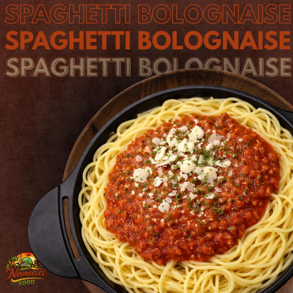 Spaghetti, Tomaten, Zwiebeln, Gewürze, Rinder- und Kalbhackfleisch, Parmesan.