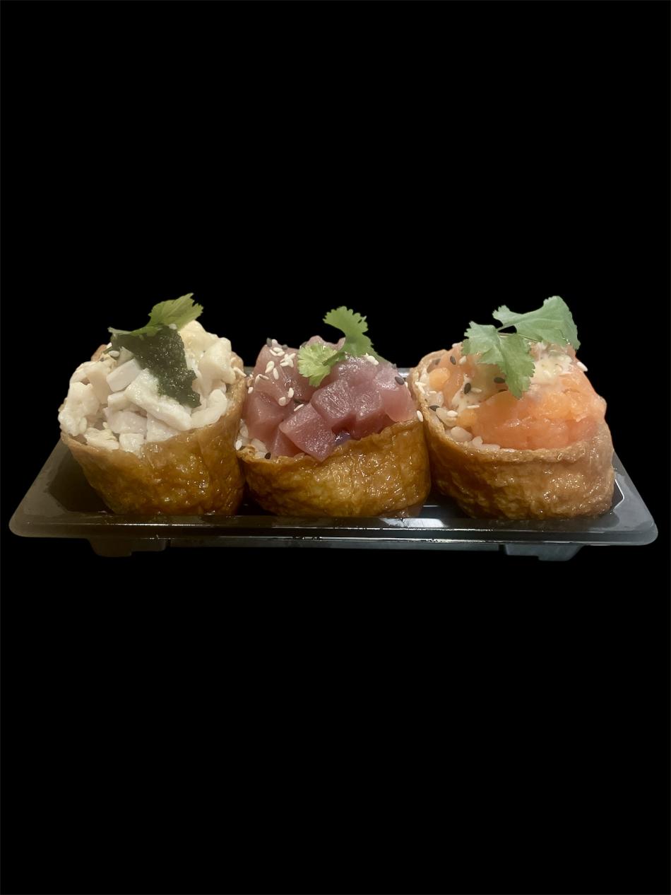 Inari Combo – 3 Stück (Hähnchen, Thunfisch, Lachs)