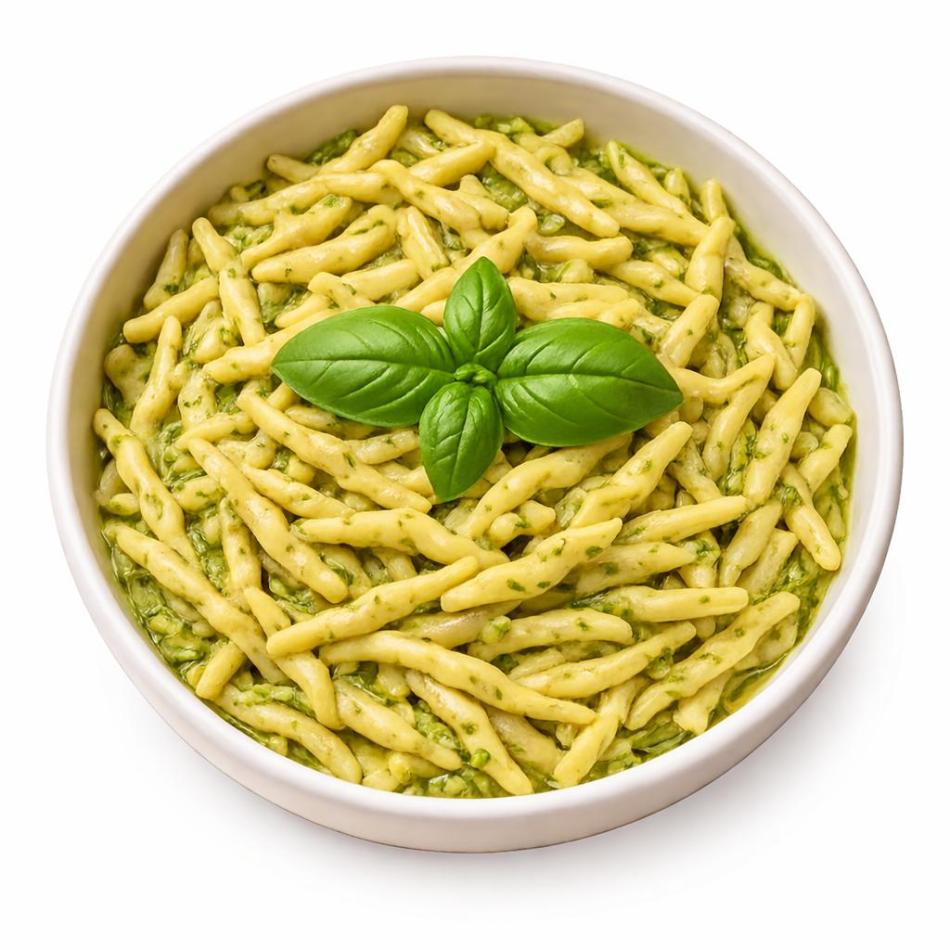 Pesto, Basilikum, natives Olivenöl extra, Cashewnüsse, Grana Padano DOP, Pinienkerne. Parmesan wird automatisch serviert. Bitte 3 Minuten in der Mikrowelle erhitzen, um die perfekte Temperatur zu erreichen.