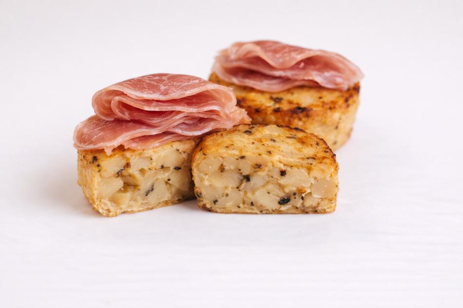 Authentische spanische Tortilla Bites mit schwarzem Trüffel und Serrano-Schinken – 6 Stück · 150 g
