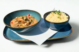 Hähnchengeschnetzeltes mit Champignons und Reis +/- 480 gr.Lieferung:
