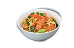 Gebratene Nudeln mit frittierten GarnelenLieferung:
