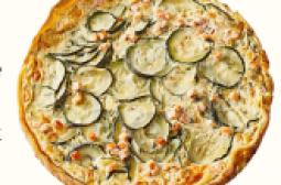 Tarte mit Zucchini und Lachs Kalt geliefert. Für optimalen Genuss bitte 1-2 Minuten in der Mikrowelle erwärmen.Lieferung: