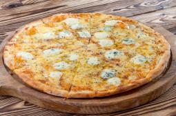 Pizza 4 Fromages ATTENTION : Les pizzas pourraient ne plus être chaudes/chaudes au moment de l'enlèvement et devraient alors être réchauffées !Livraison: